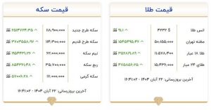 در بازار مسکوکات طلا نیز هر قطعه سکه تمام طرح جدید با جهش دو میلیون و ۵۱۴ هزار و ۷۲۴ تومانی به ۱۱۸ میلیون و ۹۰۰ هزار تومان رسید و هر قطعه سکه طرح قدیم نیز با رشد سه میلیون و ۷۰۳ هزار و ۵۵۸ تومانی، ۱۱۴ میلیون و ۳۰۰ هزار تومان به فروش رفت.